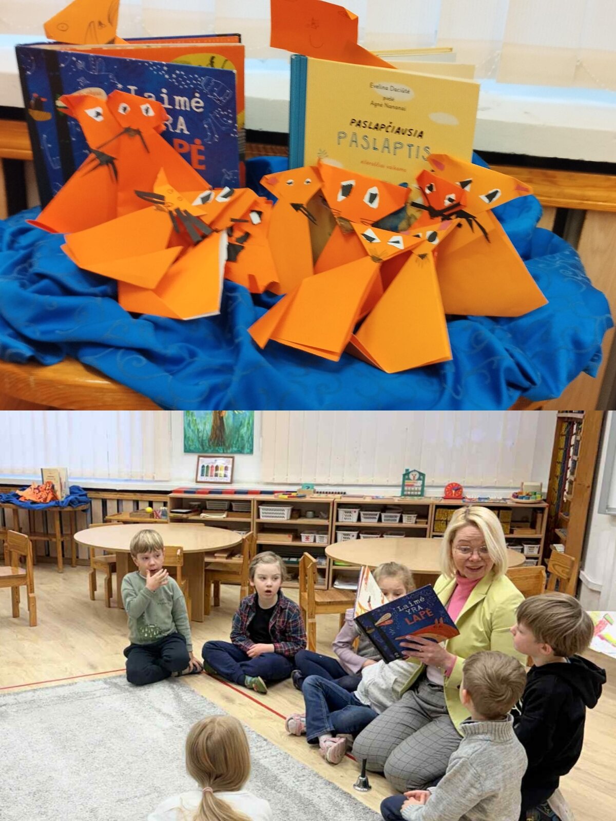 Į paslaptingą, intriguojantį ir įdomų pasakų pasaulį šiandien išsiruošė ir „Žiniuko“ gr. ugdytiniai ir jų mokytojos, bei muzikos mokytoja Daina. Kelionė buvo labai įdomi, kūrybiška ir nuotaikinga. Ugdytiniai ne tik susidomėję klausėsi mokytojos skaitomos pasakos, bet ir atsakinėjo į pateiktus klausimus. Vėliau klausantis muzikinio kūrinio „Lapė snapė“, kūrė savo sugalvotą lapę, kurios išsiskyrė savitumu, charakteriu ir mimika. Dėkojame rašytojai E. Daciūtei už tokias gražias istorijas ir pasakojimus skirtus vaikams.