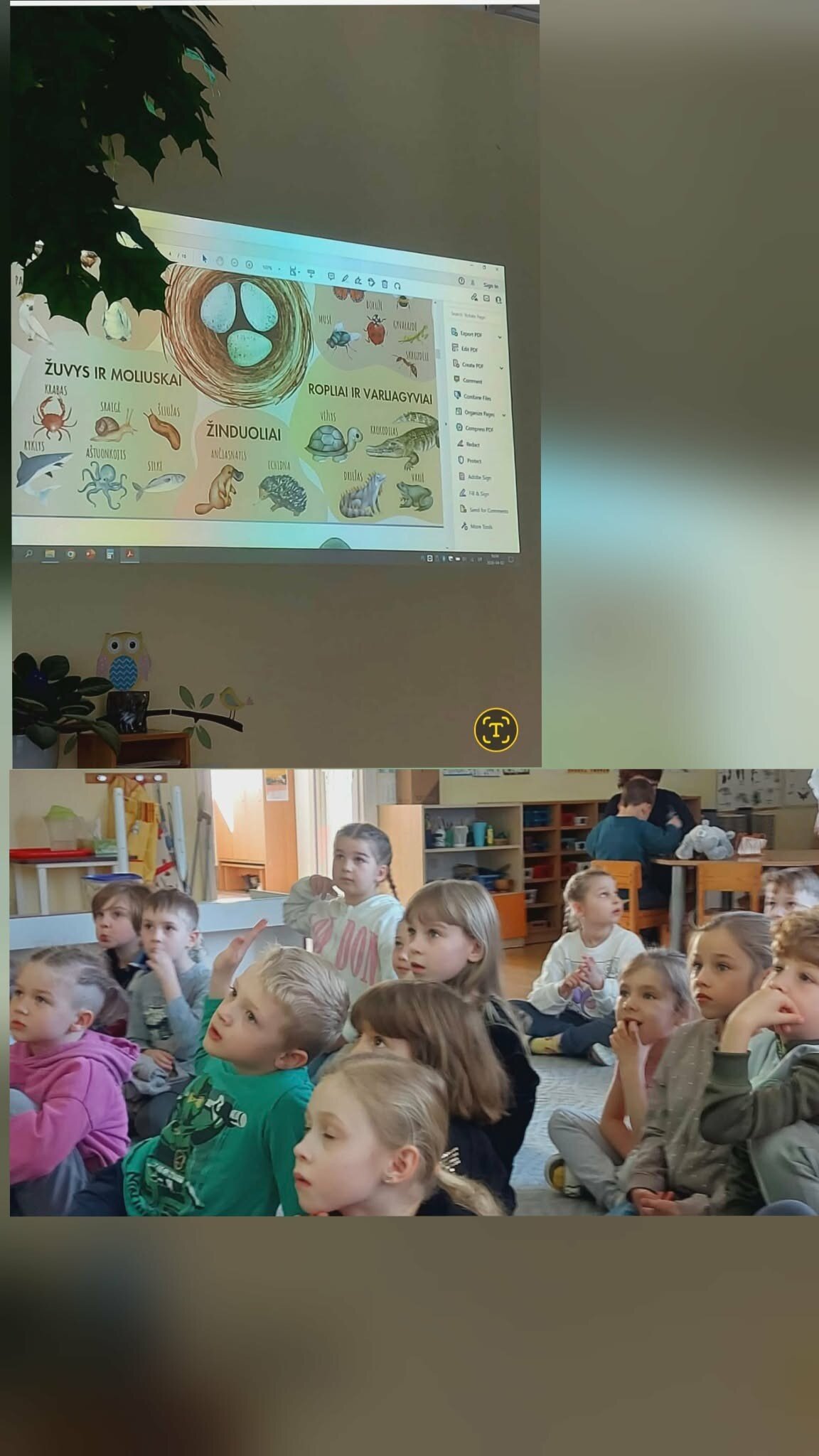 Ketvirtadienio popietę, artėjant Šv. Velykoms, „Žiniuko“ grupės ugdytiniai su mokytoja Rasa Stankevičiene svečiavosi pas savo draugus „Pelėdžiukų“ grupėje. Susibūrę bendrai veiklai, vaikai pasinėrė į paslaptingą gamtos pasaulį ir žiūrėjo edukacinę medžiagą apie kiaušinius.