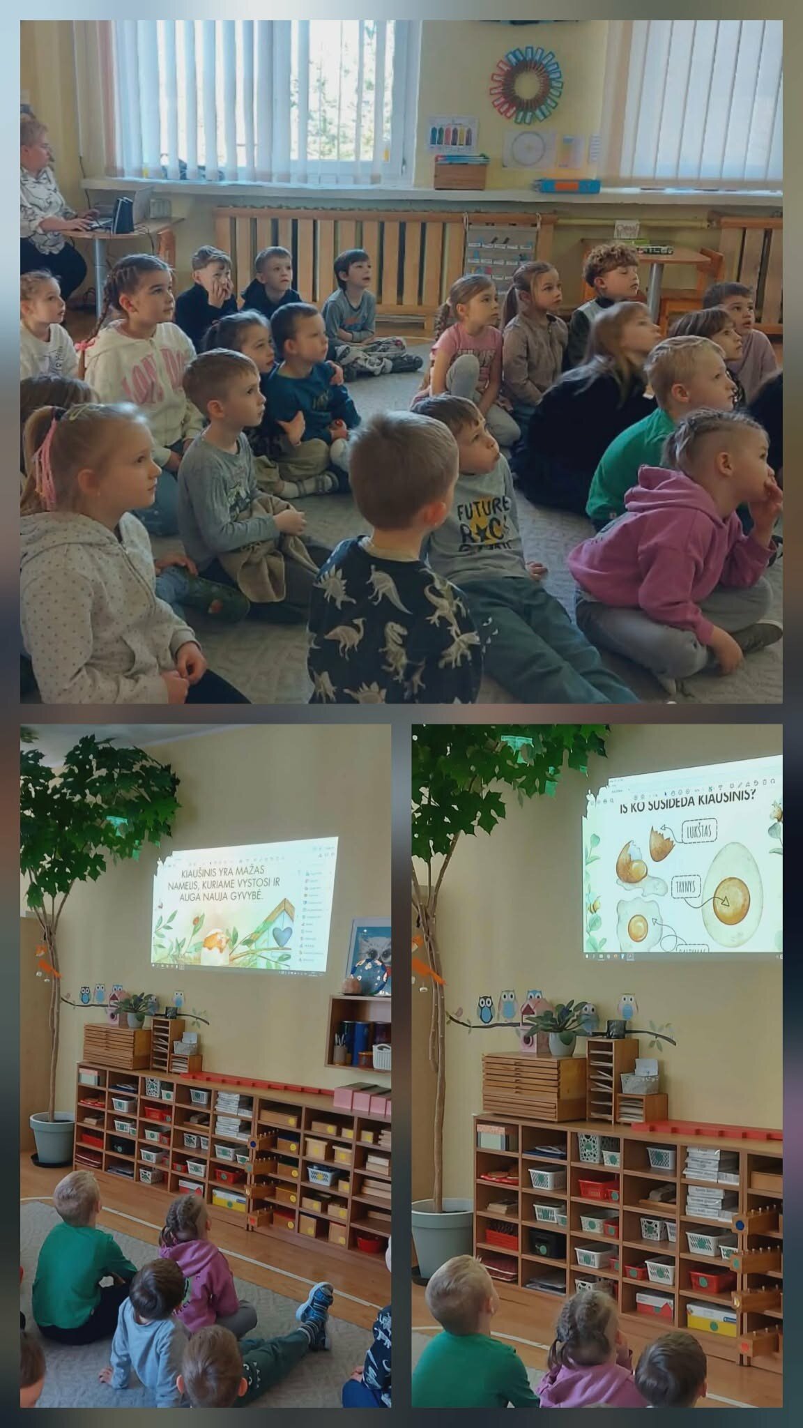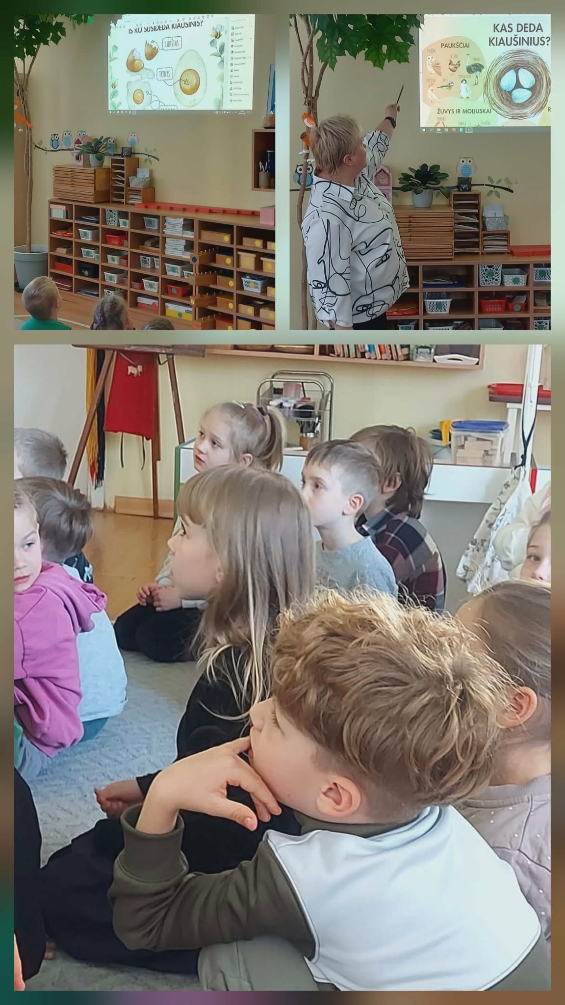 - Gamtos iššūkiai: ugdytiniai susidomėję klausėsi pasakojimų apie tai, kiek laiko paukščiai peri savo jauniklius ir kokie pavojai bei plėšrūnai kėsinasi į kiaušinius gamtoje.