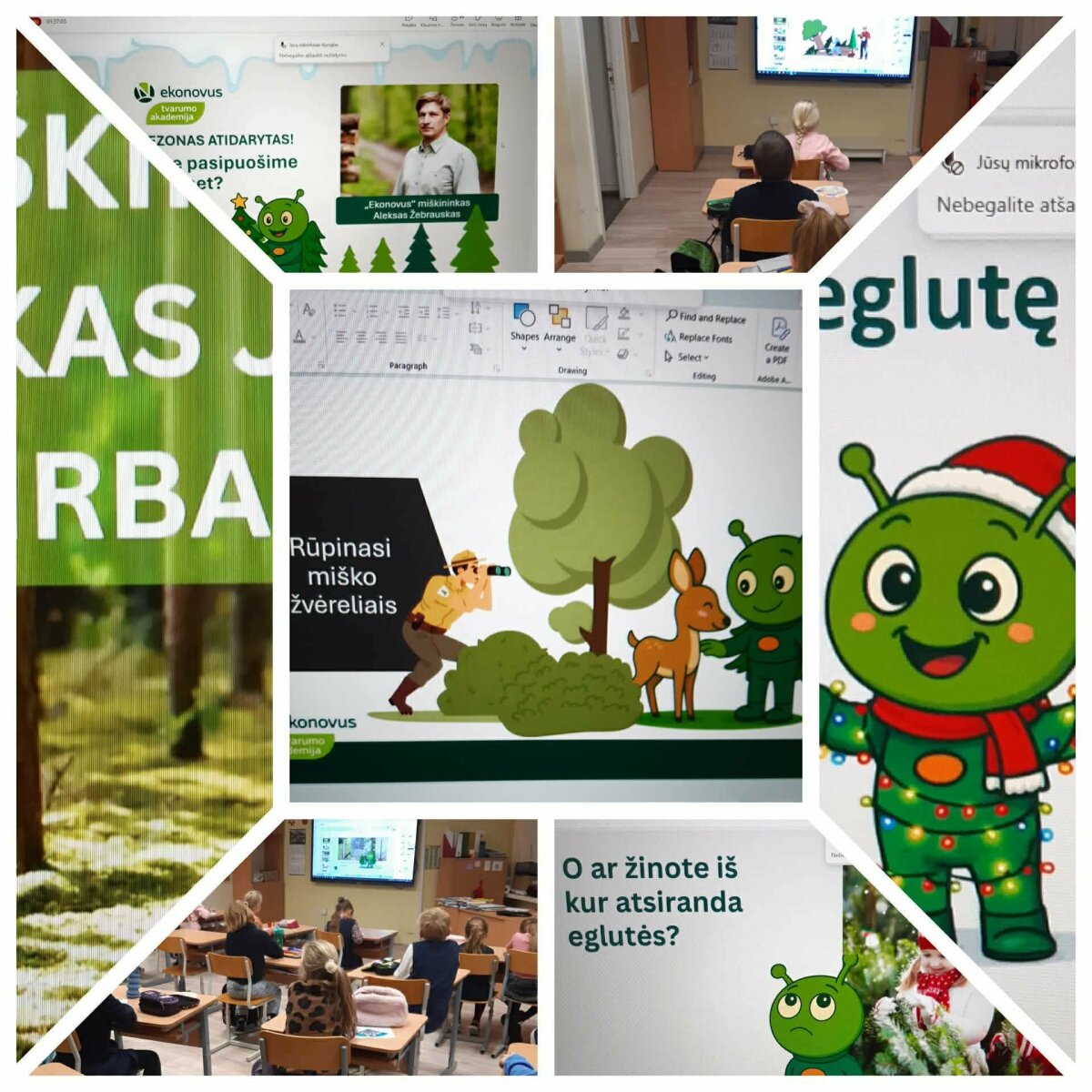 Pirmokai ir ketvirtokai dalyvavo nuotolinėje pamokoje ,,Eglučių sezonas atidarytas!". Pamokos metu miškininkas A. Žebrauskas – gamtos mylėtojas, kasdien dirbantis miškuose ir puikiai išmanantis, kaip pasirinkti tvarią šventinę eglutę, papasakojo apie miškininko profesiją –supažindino su darbais, kuriuos jis atlieka. Vėliau paaiškino iš kur atsiranda eglutės miške ir kokios eglutės yra palankiausios gamtai.